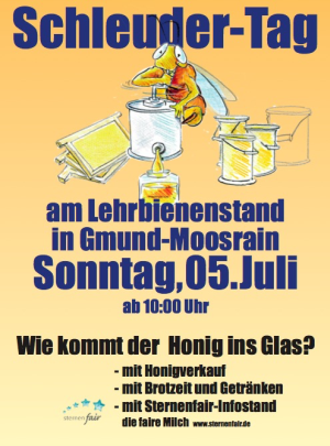 Am 5. Juli ab 10 Uhr ist Schleudertag am Lehrbienenstand in Moosrain. Hier wird gezeigt, wie der Honig ins Glas kommt und vieles mehr Rund um die Imkerei.